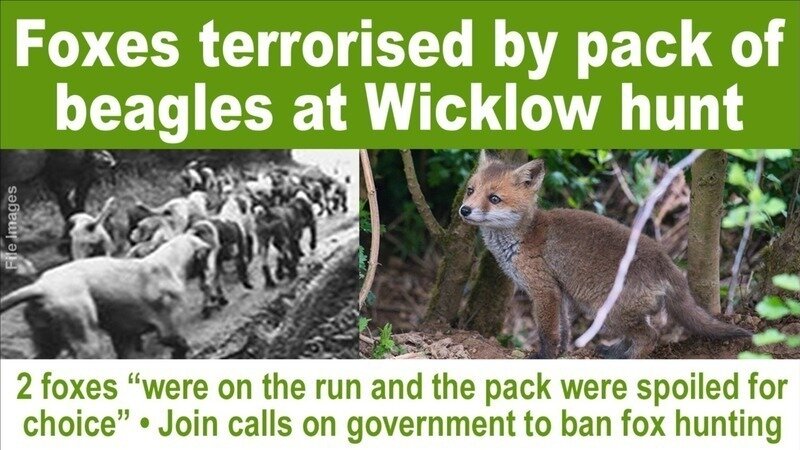 Foxes were terrorised by pack of beagle dogs during a shameful hunt in County Wicklow.