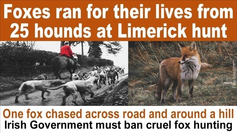 Foxes were forced to run for their lives from hunters and a pack of 25 hounds during a shameful hunt in County Limerick earlier this year.