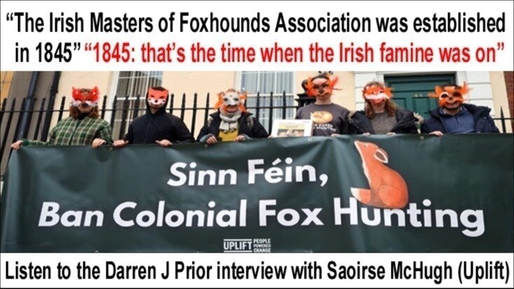 During a NEAR FM interview with Uplift’s Campaigns Director Saoirse McHugh, listeners were this week reminded that the Irish Masters of Foxhounds Association was established in 1845 at the start of the “Irish Famine” (Great Hunger).