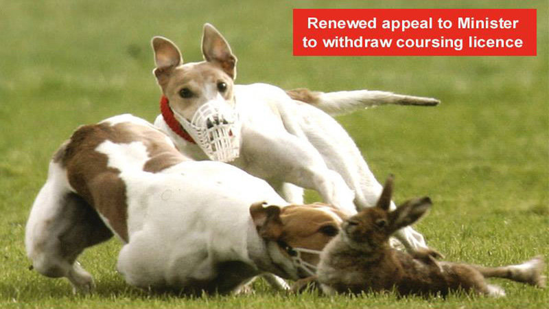 The injuries and deaths occurred on 23rd September during "coursing trials" held the week before the first coursing meeting of the season in Kilflynn. In a letter to Minister Heather Humphreys' secretary, these trials - which add to the immense suffering of captured hares - were referred to by the Director of the National Parks as "a rehearsal for coursing meetings".