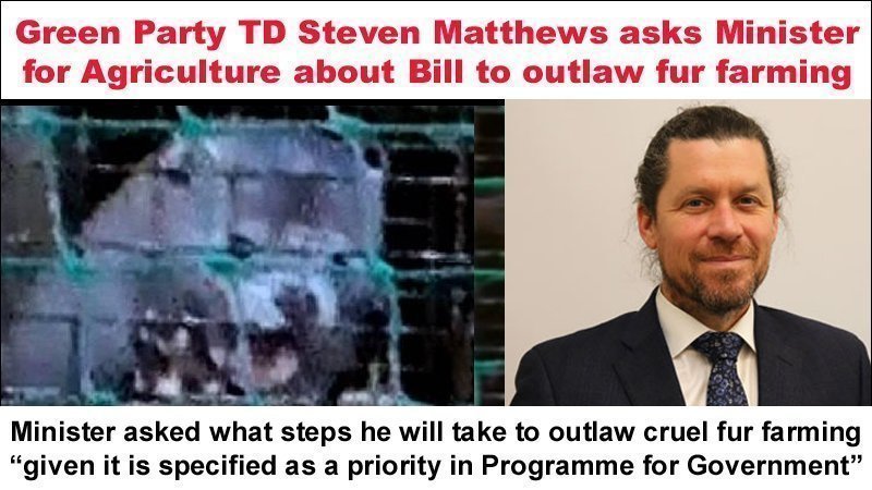 Green Party TD Steven Matthews (Wicklow) has asked the Minister for Agriculture “the steps he will take to introduce a draft Bill to outlaw fur farming given it is specified as a priority in the programme for Government.”