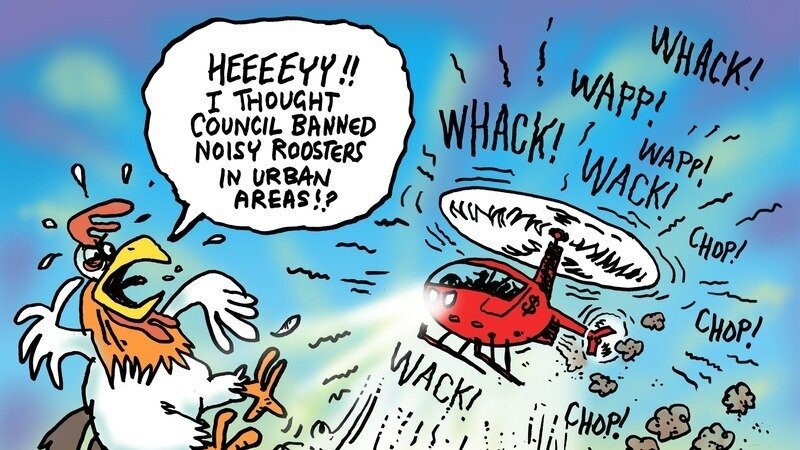 Special thanks to Chris Slane for the cartoon. As someone pointed out at our recent public meeting he can't keep a rooster in his backyard but his neighbour up the road can land a chopper in his under the current Auckland Unitary Plan rules. Change is overdue - make your voice heard with your submission.