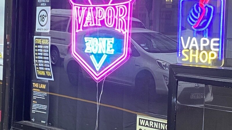 The photo above is of a shop window clearly advertising vapes in Wellington CBD even though the new regulations were supposed to ban such advertising.