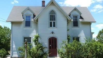 The building above is included on the National Register of Historic Places as a contributing resource to the Stratford Center Historic District, which was established in 1983. It is an American Carpenter Gothic home. It was built in 1856 by Sara Elizabeth Johnson Devereux, and sits on what was part of the William Samuel Johnson Estate. This type of structure is rare, and typically listed in the National Historic Register.