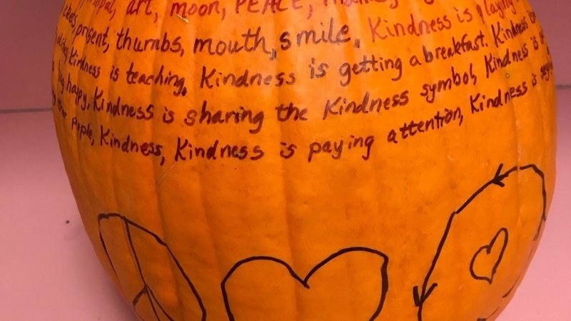 Our Peace, Love, Kindness Pumpkin started as a Gratitude Pumpkin and morphed into a Kindness Pumpkin just in time for World Kindness Day! (November 13). We’re just getting started !