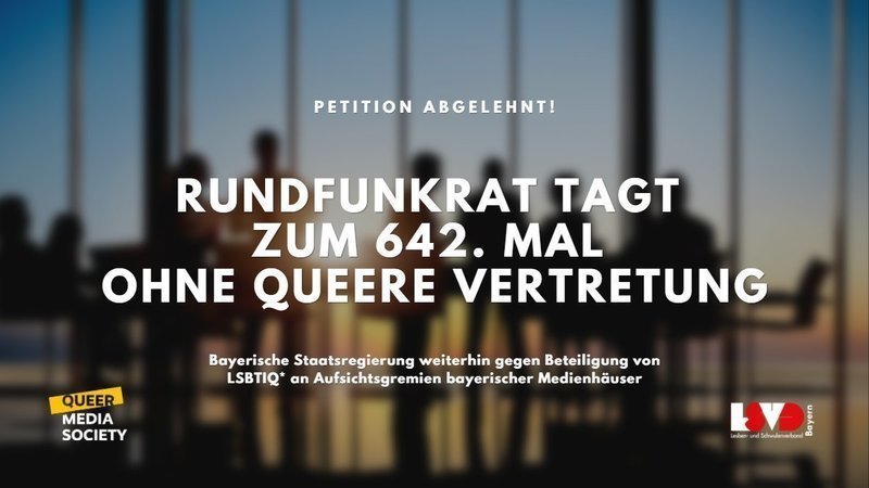 Bereits Anfang des Jahres hatten über 14.000 Menschen gemeinsam mit dem LSVD Bayern und der Queer Media Society (QMS) eine LSBTIQ*-Vertretung im BR-Rundfunkrat eingefordert. Die entsprechende Petition fand zwei Wochen zuvor im zuständigen Landtagsausschuss für Wissenschaft und Kunst keine mehrheitliche Zustimmung.