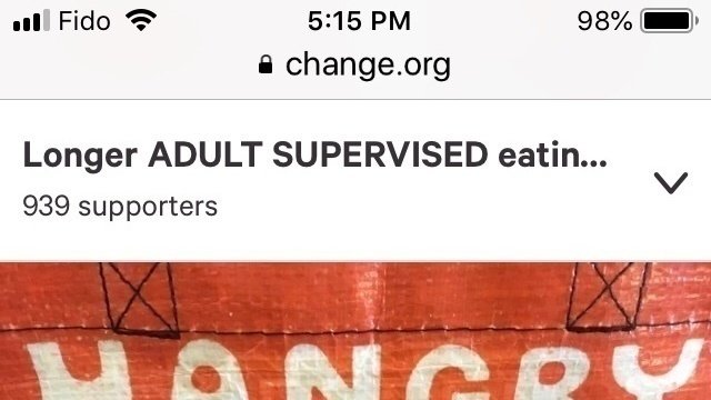 Petition updateLonger ADULT SUPERVISED eating time at lunch for elementary school children in BCOVER 900 signatures in 3 days!!