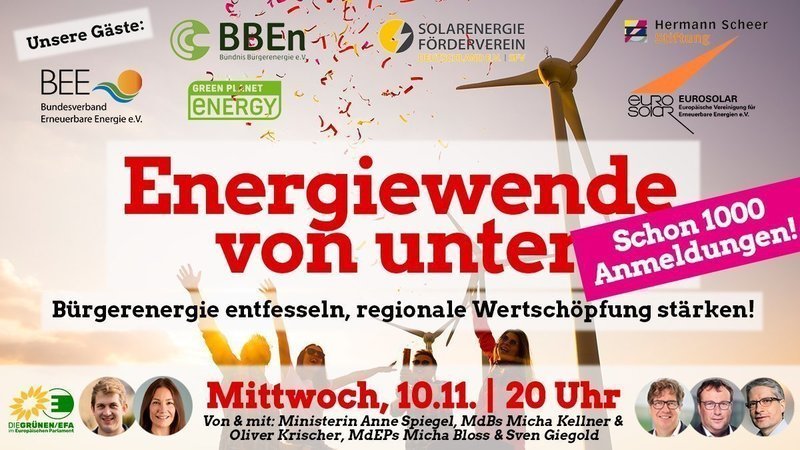 der Ausbau der Erneuerbaren Energie in Deutschland ist mächtig ins Stocken geraten. Um die Klimaziele zu erreichen, müssen wir dringend und unkompliziert grünen Strom ankurbeln. Die Bürgerenergie - also lokale grüne Energie aus dezentralen Wind- und Solaranlagen auf Dächern und Freiflächen - ist ein Schlüssel zur Energiewende. Denn regionale grüne Energie erlaubt es uns allen, an der Energiewende teilzuhaben. Die Kommunen verdienen einen größeren Anteil an der Wertschöpfung. Bürgerinnen und Bürger und Unternehmen aus der Region sollten als Investoren weiterhin zum Zuge kommen, um die Energiewende wieder zu beschleunigen.