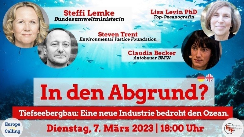 Die Tiefsee ist in Gefahr. Obwohl wir fast nichts über die Tiere, Pflanzen und ihrer Rolle fürs Klima wissen, wollen einige Staaten & Bergbaukonzerne auf dem Meeresgrund Mineralien abbauen. Aber es formiert sich Widerstand. Seid dabei & diskutiert mit Bundesumweltministerin Steffi Lemke und anderen im Webinar von Europe Calling. Gleich hier anmelden: https://t1p.de/gtm87