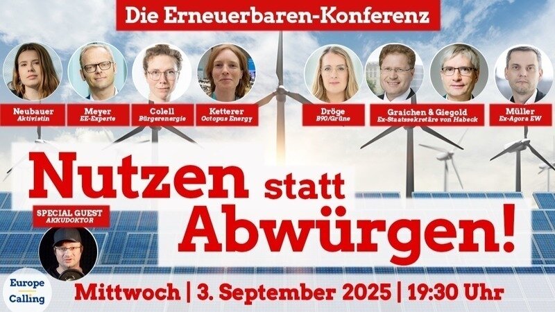 Zudem: Welche guten Reformen braucht die Energiewende, um den Strom aus Erneuerbaren Energien effektiv nutzen zu können? Und vor allem: Wie können wir gemeinsam mit Wirtschaft, Umweltbewegung, Wissenschaft und Politik dafür sorgen, dass die Erfolgsgeschichte Energiewende noch besser wird, statt sie abzuwürgen?