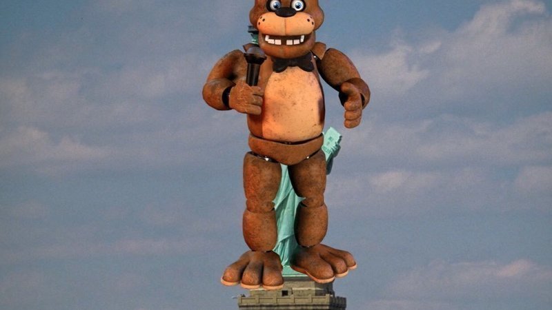 Replace the weird Green Chic standing over NYC with the literal Freddy Fazbear