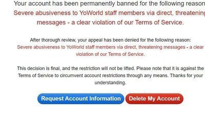Willow & Vivica have been players of YoWorld since 2009. They have supported this game financially and through blood, sweat, and tears... they have had many good memories and have spent a lot of time building up their inventories and making friends while being a good member of this community. Like most, they have made some mistakes but nothing that warrants a permanent in-game ban. However, that is what happened after they lashed out at BVG through email. This does not take away from the fact that they have been loyal and GOOD customers and players of YoWorld (formerly Yoville) since 2009. This game is a second home to them and they deserve a second chance.