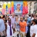 Co-name 8th Ave at West 16th St to honor Gilbert Baker. Gilbert created the mile-long gay pride flag at Stadtlanders Pharmacy, known for AIDS medications, for the 25th anniversary Pride march. The giant flag set Gilbert's 1978 rainbow design as the global symbol of the LGBT community.