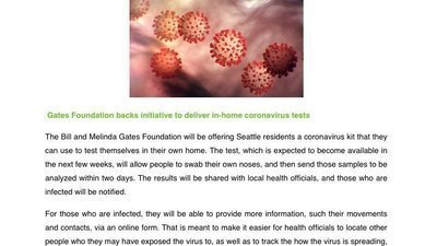We all need COVID-19 testing now. The Bill & Melinda Gates Foundation is potentially planning to administer COVID testing by mail in Washington State within the next few weeks. We urge the Gates Foundation to make this mail-in testing available nationwide. Sign the petition calling on the Bill & Melinda Gates Foundation to invest the needed funds now to test every American for COVID.