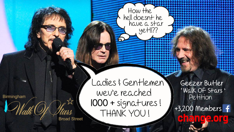 Обновление к петицииGeezer Butler to receive a Star at Broad Street 'Walk Of Stars' Birmingham1000+ MILESTONE !