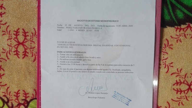 Lastimosamente hasta el momento seguimos sin recibir Ningún tipo de ayuda por parte del Ministerio Público o del Miess. Soy una madre de bajos recursos económicos y son fuertes y constantes los gastos que día a día realizo con el fin de poder darle una mejorar calidad de vida a mi bebita. Es por ello que solicito de su ayuda por favor. Adjunto la imágen del pedido del estudio. Dios les Bendiga Siempre.
