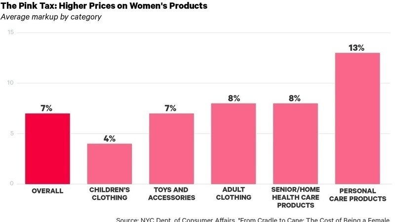 The "Pink Tax" refers to the extra amount of money a woman must pay for basic, essential products such as sanitary products, shampoo, clothes and razor blades. In comparison with Male alternatives, these products will likely be more expensive purely due to the fact that they are products targeted specifically for women.