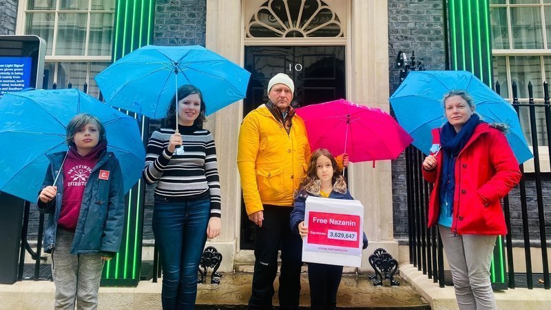 We went to No.10 with a small group of Richard’s close family. Gabriella, Nazanin’s seven year old daughter, proudly handed over the petition box containing 3.6 million signatures of people who want her mother to be free.