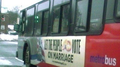 Take an alternative vehicle to work until the DC Metro system takes down the Stand4Marriage signs. This is a group of radical right religionists who want to interfere in the civil rights of the citizens of the District. DO NOT GIVE METRO ANY PROFIT during this time period. I will repost here when the signs come down.