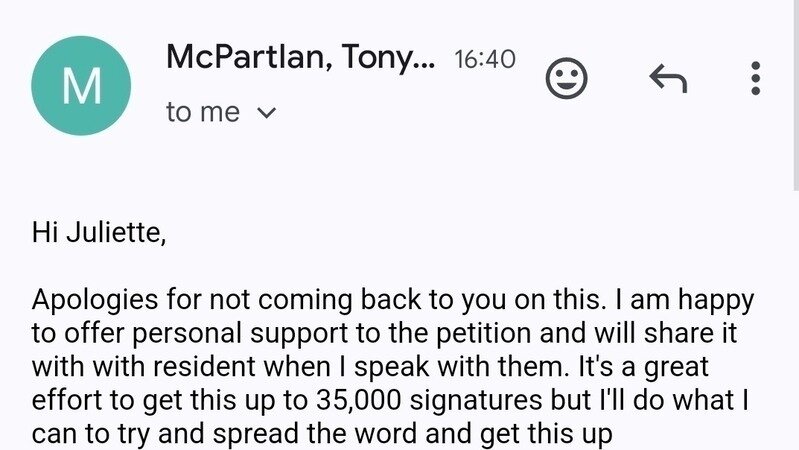 My local councillor responded and he's going to try and promote this petition further, but the people who need to respond still have not. I'm resending those emails to Labour MPs today.