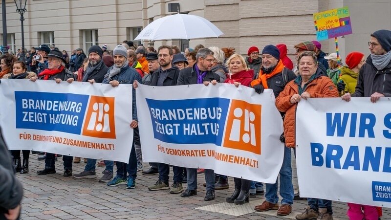 Bereits am Wochenende nach den Enthüllungen der Rechercheplattform Correctiv sind in Potsdam mehr als 10.000 Menschen auf die Straße gegangen. Seitdem finden in ganz Brandenburg jede Woche zahlreiche Demonstrationen statt – nicht nur in den großen Städten Cottbus, Frankfurt/Oder und Brandenburg an der Havel, sondern auch in kleineren Orten.
