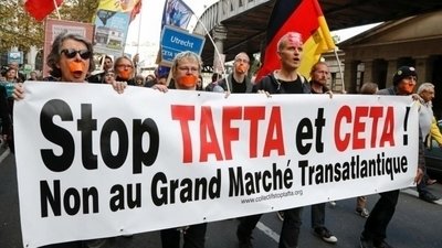 Ce traité ultralibéral, tout en abaissant toutes les normes sociales et environnementales, permettrait à des grandes firmes de trainer des État devant des juridictions privées, ouvrant ainsi la voie à toutes les dérives.