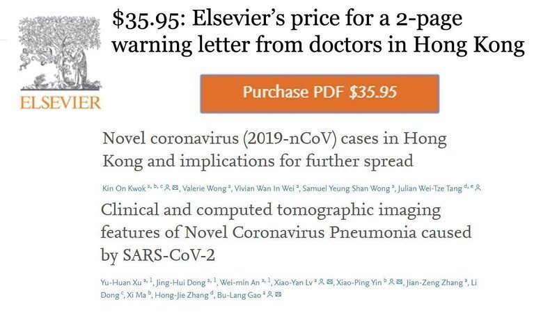 Urgent scientific releases on COVID-19 published in the Journal of Infection remain paywalled on Elsevier's ScienceDirect. Elsevier must allow COVID-19 science to be shared freely with the world immediately upon release. Paywalls and embargoes will not be allowed to obstruct the scientific community during the crisis.