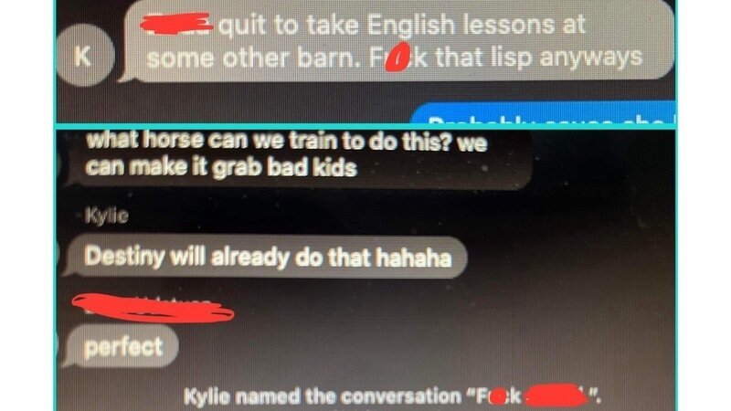 Kylie renamed a group chat with a derogatory comment about a girl, and she mocked another girl who has a speech impediment because the girl left to take lessons at another barn. The girls are 13/14 year old children.