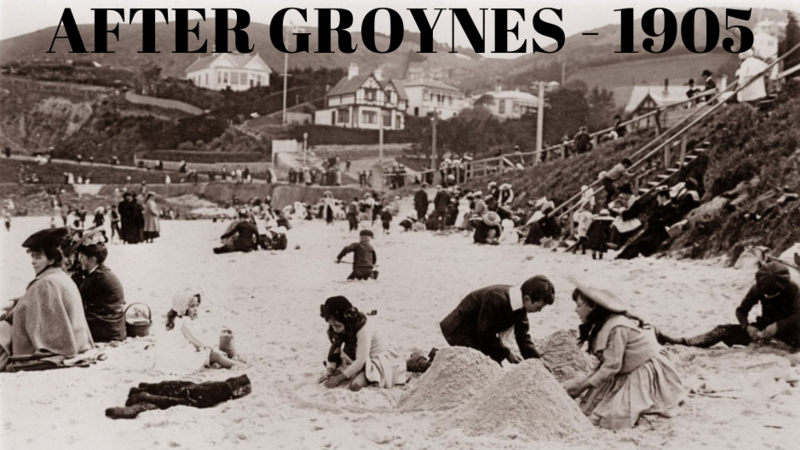 Here is a delightful photo from 1905 showing lots of soft, dry sand at the esplanade just a couple of years after the first groynes were built. If you compare this scene to previous photos in the illustrated history of St Clair, the difference is astonishing!