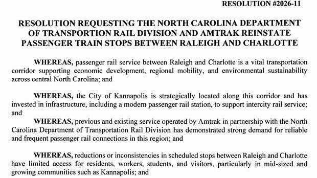 This week the Kannapolis City Council passed a resolution requesting NCDOT Rail Division restore the Piedmont rail service to NC communities!