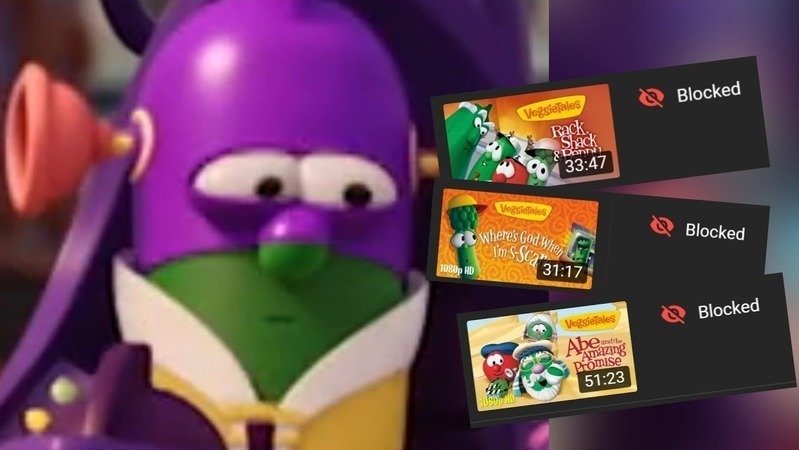 Explaining the video about VeggieTales full episodes are deleted or blocked worldwide: https://www.youtube.com/watch?v=LJsjyPSH6lU