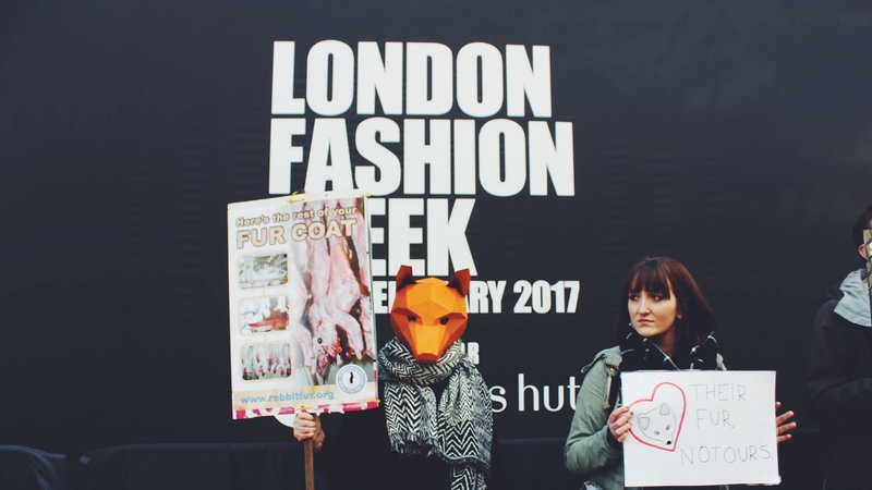 Hi guys, we had an amazing all weekend protest outside of the London Fashion Week main show space - pleased to say we had an incredible turn out of around 100 people! We blasted the sounds of animals having their fur torn from their bodies into the venue, forcing the organisers and designers to confront the abject reality of fur production. We screened footage from the fur trade to the public and got so many positive responses from passersby and LFW designers who were disgusted by what LFW continues to promote.