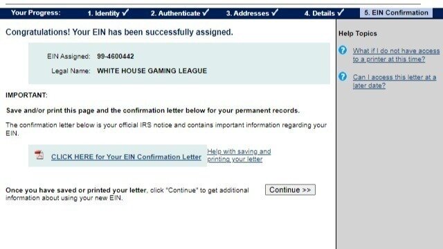 NOHas employees who receive Forms W-2:NOReason for Applying:STARTED A NEW BUSINESS EIN Assigned:99-4600442Legal Name:WHITE HOUSE GAMING LEAGUE
