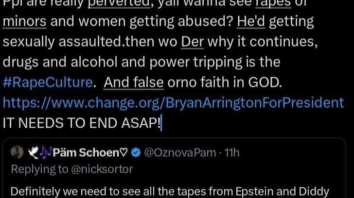 If they won't put me on the ballot you can write my name in 🙏🏾 https://www.change.org/BryanArringtonForPresident I hope people really pay attention. Donald Trump and Kamala Harris have not said s*** about ending the war. They Don't even care all of them are controlled by the Jewish system and they will ignore all the deaths that are happening.They don't have a plan.They don't have an idea.They don't even have empathyWhat do you do Think they never asked Questions about ending the wars because they don't have any idea or are pawns. Why do you think they ignore. Me won't even say my name. Kamala Is in office now since the war began. Think about that and Republicans don't give a damn about Gaza I'm not asking for your money just your support, together we can save lived and fight to stop and prevent wars. You not a leader just by sending bombs and killing people, that's a coward! I know ppl are conflicted but honestly think for your self. We will all still be struggling . Ppl are really perverted, yall wanna see rapes of minors and women getting abused? He'd getting sexually assaulted.then wo Der why it continues, drugs and alcohol and power tripping is the #RapeCulture. And false orno faith in GOD. https://www.change.org/BryanArringtonForPresident IT NEEDS TO END ASAP!