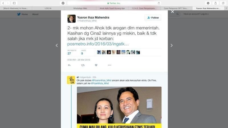 Tidak pantas pejabat pemerintah memposting kalimat seperti ini. Nada bersifat mengancam etnis khusus secara langsung dan terbuka. Sungguh pedih melihat ulang pejabat seperti ini yang mengaku bergelar Doktor dan Profesor
