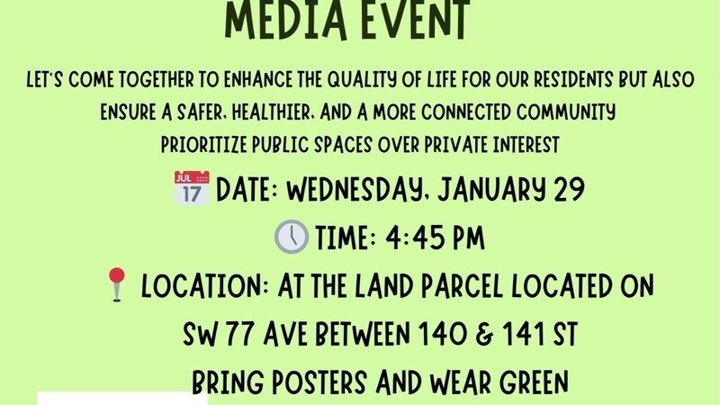 Let's come together on Wednesday, January 29 at 4:45 pm. We are planning to have Media coverage to highlight the ask to keep this space as a public green space and its impact on our community to include a Safe Route to School. Bring everyone to support, and wear green to highlight our Green Space. See You There.