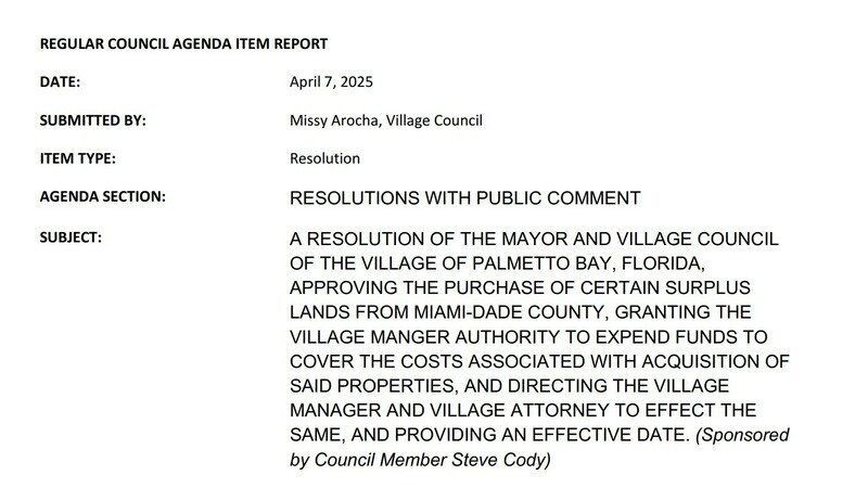I want to thank each and everyone of you, the people that supported Tanglewood Linear Park. Your advocacy and tenacity sent a message to the Village of Palmetto Bay that we want this land to remain in the hands of the Public. To maintain an open space that will be enjoyed by all. Our battle is not over and we will continue to communicate with you. Special thank you to Patrick Fiore, Mayor Cunningham and the sponsor of the resolution Steve Cody.