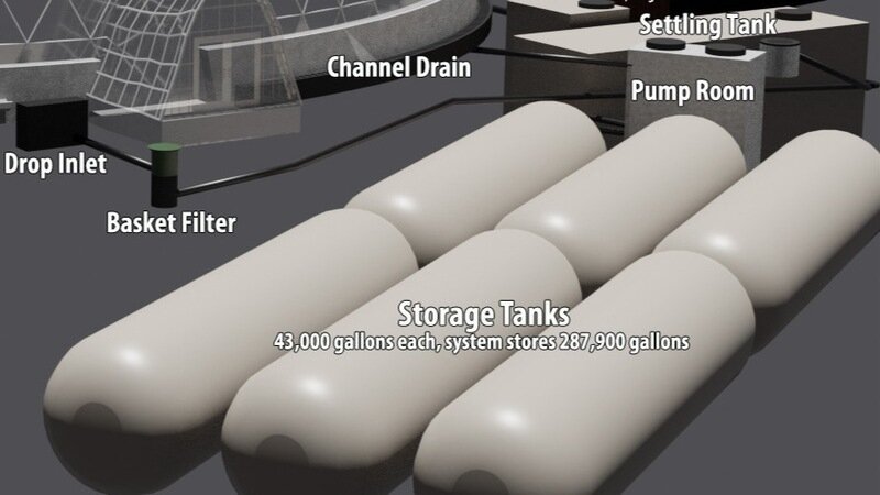Rainwater harvesting is an old idea, but new technology for a water insecure world. It’s essential for our tropical paradise, keeping the soil from salinating will maintain a vibrant oasis. The rainwater is filtered, sedimented, and stored for daily use and for droughts. 300K gal