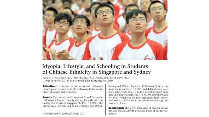 A study found a 10x drop in nearsightedness, 30% down to 3%, when young kids were outside 2 hours/day instead of 3 hours/week.