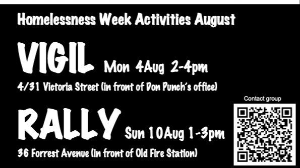 In 2024, the local Council voted unanimously to advocate for a homeless shelter. In 2025 a petition signed by 2000 people from Bunbury and surrounds was presented to Parliament.
