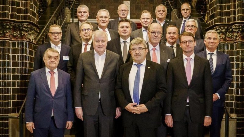 Das Titelfoto zeigt Teilnehmer die Innenminister und -senatoren der Länder und des Bundes auf der Innenministerkonferenz im Dezember 2019 in Lübeck. © Frank Peter