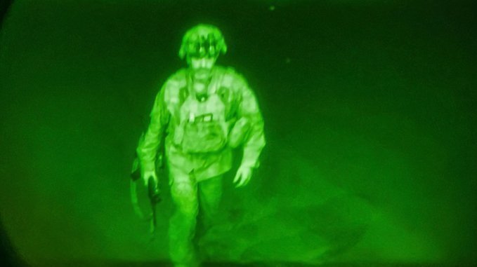Der letzte US-Soldat verlässt Kabul (Foto: Twitter/New York Times). Einen Tag früher als geplant endet damit die Luftbrücke - wer sich jetzt noch in Sicherheit bringen will, muss es auf dem Landweg tun.
