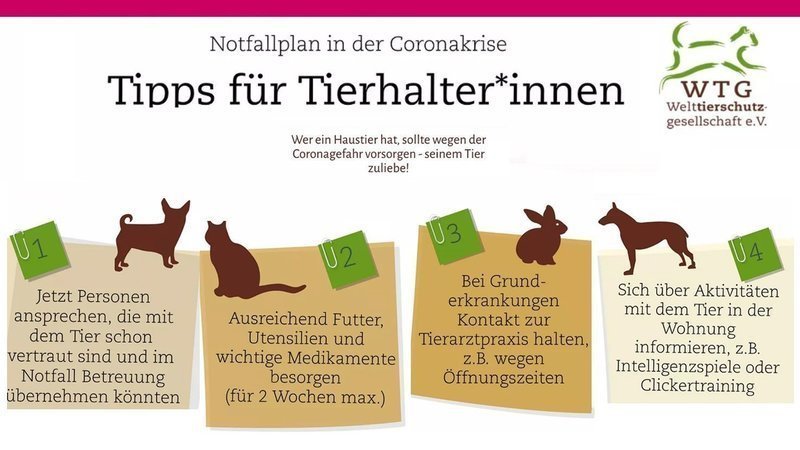 So stellt sich Tierfreund*innen und insbesondere -halter*innen jetzt erneut die wichtige Frage: Wer kümmert sich um Euer Tier, falls Ihr Euch in präventive Isolation oder krankheitsbedingte Quarantäne begeben müsst?