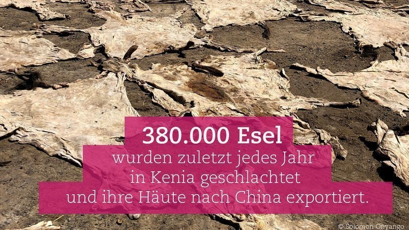 Allein 2019 wurden in Kenia 380.000 Esel geschlachtet und ihre Häute nach China exportiert. Doch als sei das damit verbundene Tierleid noch nicht schrecklich genug: Unzählige der Esel werden in den Dörfern von den zum Teil ärmsten Menschen des Landes – und sogar über die Landesgrenzen hinweg in Tansania – schmerzlich vermisst. Sie wurden gestohlen, um gewinnbringend für den Handel mit Eselshaut verkauft zu werden.