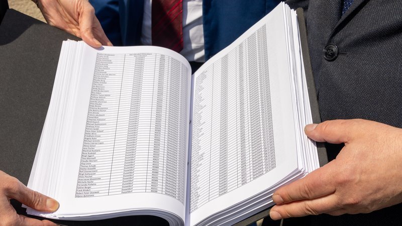 Zwei Fotos von der Übergabe an den Petitionsausschuss Landtag Dresden im Beisein vor Herrn Dr. Weigand. 62.908 Bürger haben die Petition unterschrieben. Das genaue Ergebnis der Petition wird zeitnah in Sachsen kommuniziert.