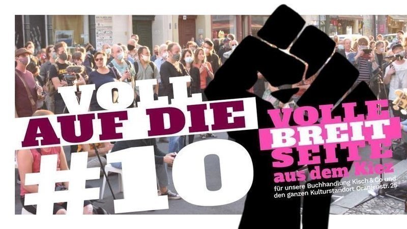 Wir melden ein bitteres Jubiläum an: Unseren zehnten gemeinsamen Protest gegen die Verdrängung der Buchhandlung
