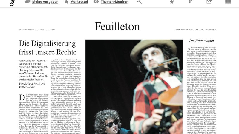 Petition updateUnterstützung des Referentenentwurfs zur Reform des UrheberrechtsHeute in der FAZ 29.04.2017