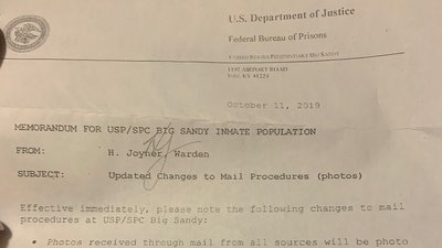 Big Sandy Penitentiary is a Federal prison that house more than 1,467 inmates locate in Inez Kentucky.We want to ask that our loved ones get better treatment. This facility keeps violating the inmate's rights and treating them unhumanely. They get fed poorly, locked down for day/weeks due to lack of space in solitary confinement also known as the Special Housing Unit. This is affecting them mentally. They have a strict mail policy that often changes. Letters are photocopied by the prison and now the pictures they received by their loved ones and third parties are being photocopied in black and white. Pictures are also given to the wrong inmates which is a safety concern and stressful on their loved ones at home. Please help the inmates get better treatment, hot meal and less balogna! Help with NO MORE lock downs for the ones who dont cause problems and want to do their time piecefully. Also atleast get color picture copies because the little things do matter.