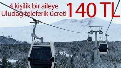 4 kişilik bir Aile'ye Uludağ Teleferik ücreti 140 TL