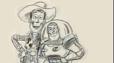A reward for meeting these goals is this sketch done by the same person who turned Woody into a cowboy for TS1 and in turn led to the creation of Buzz as a space toy. Bud Lucky’s sketches of the characters he help to make.